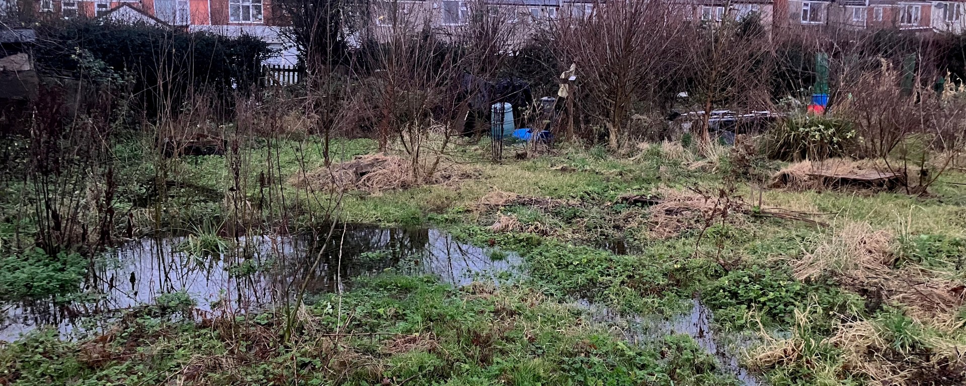 Our climate adaptation project aims to reclaim part of the land for vegetable growing (using a mix of raised beds and permaculture/food forest techniques) and to gently steer/manage the remainder as wetland meadow/wildlife habitat.