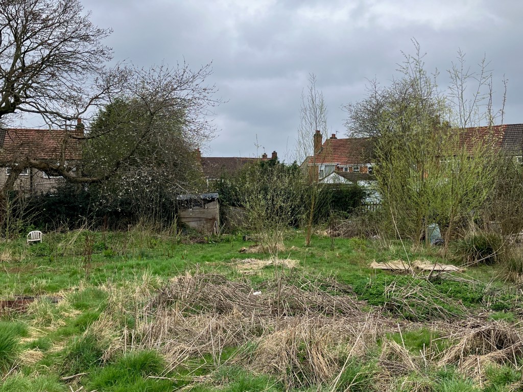 These four plots have been gradually abandoned as people’s vegetables have rotted in the soil, or their backs have given way to trying to dig such heavy soil, and the willows have moved in…
