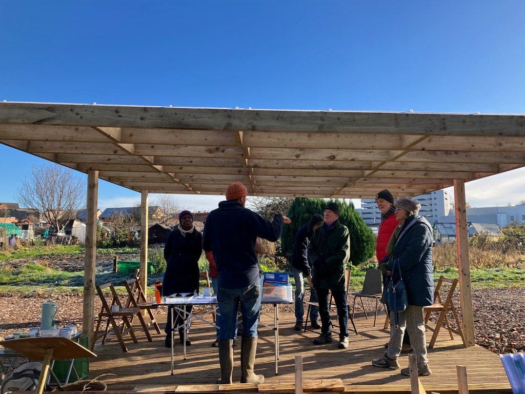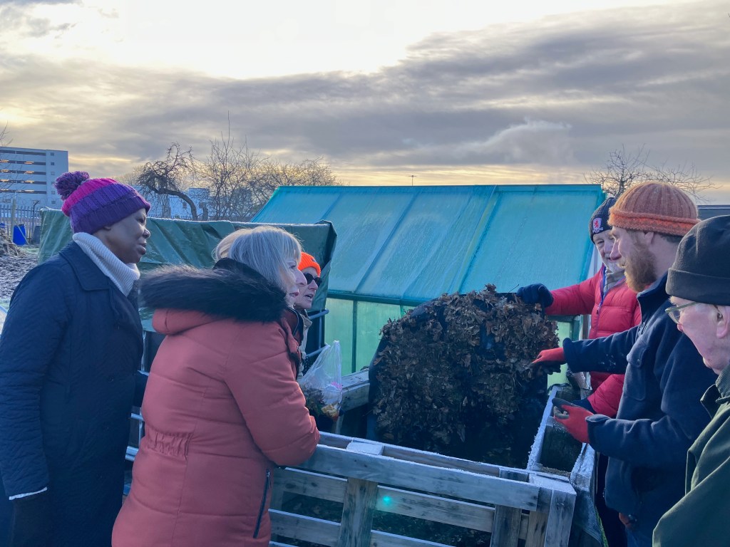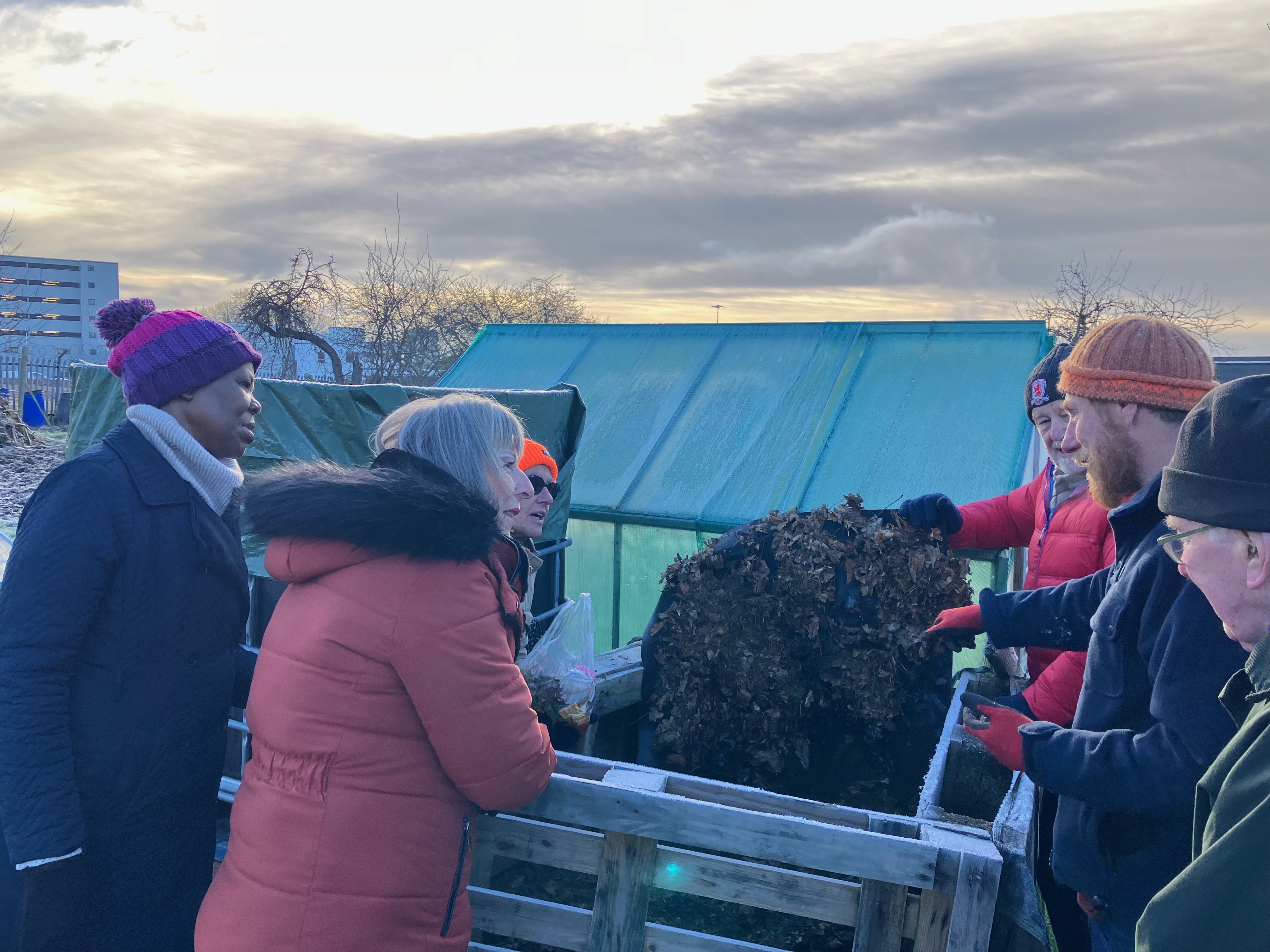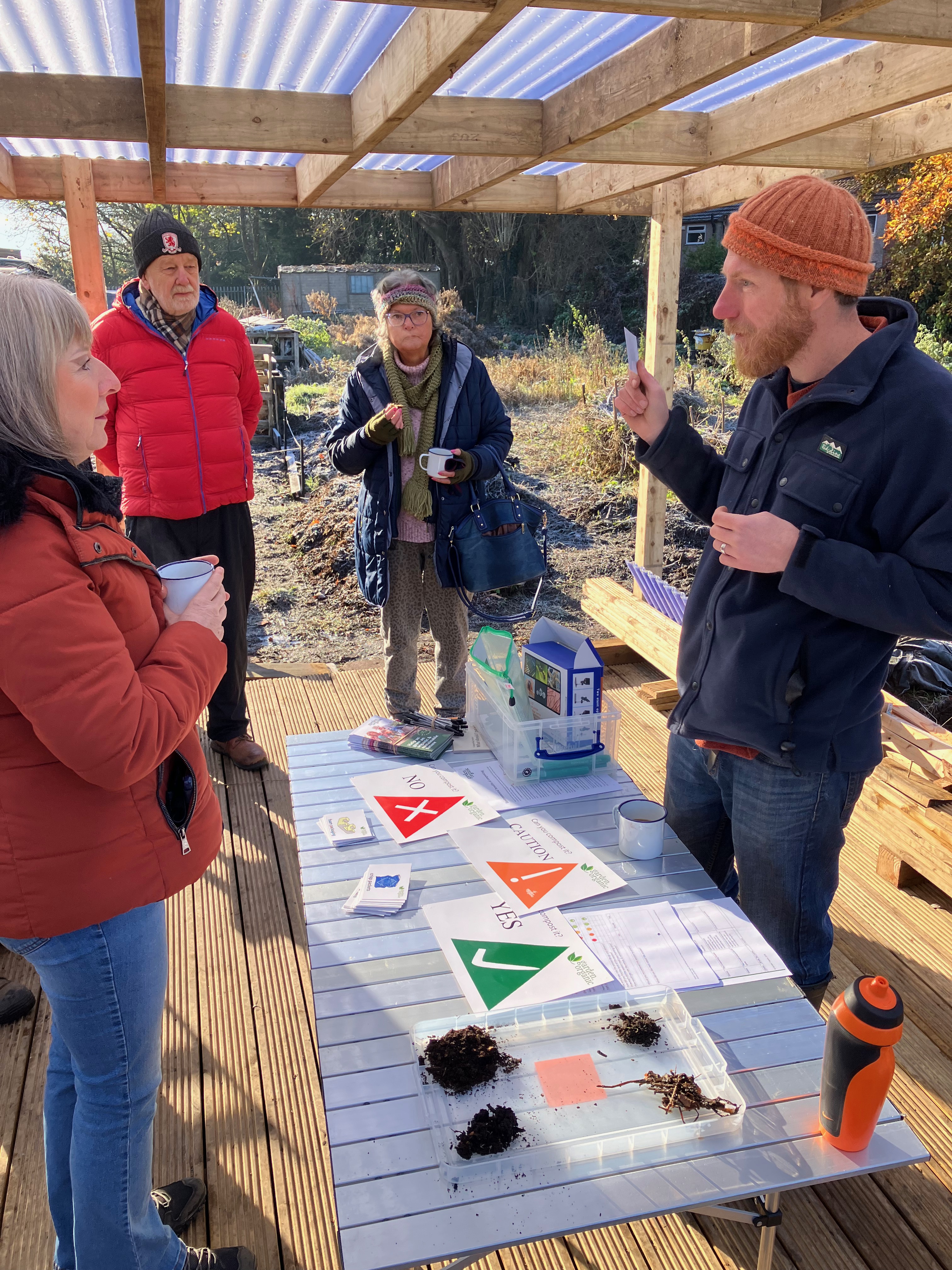This was the first of two workshops we’re hosting on site as part of this Climate Adaptation project. Led by experts from Garden Organic, these workshops – on Successful Composting and Building Soil Health – are both aimed at helping plot-holders to build (climate) resilience into all stages of the growing process.