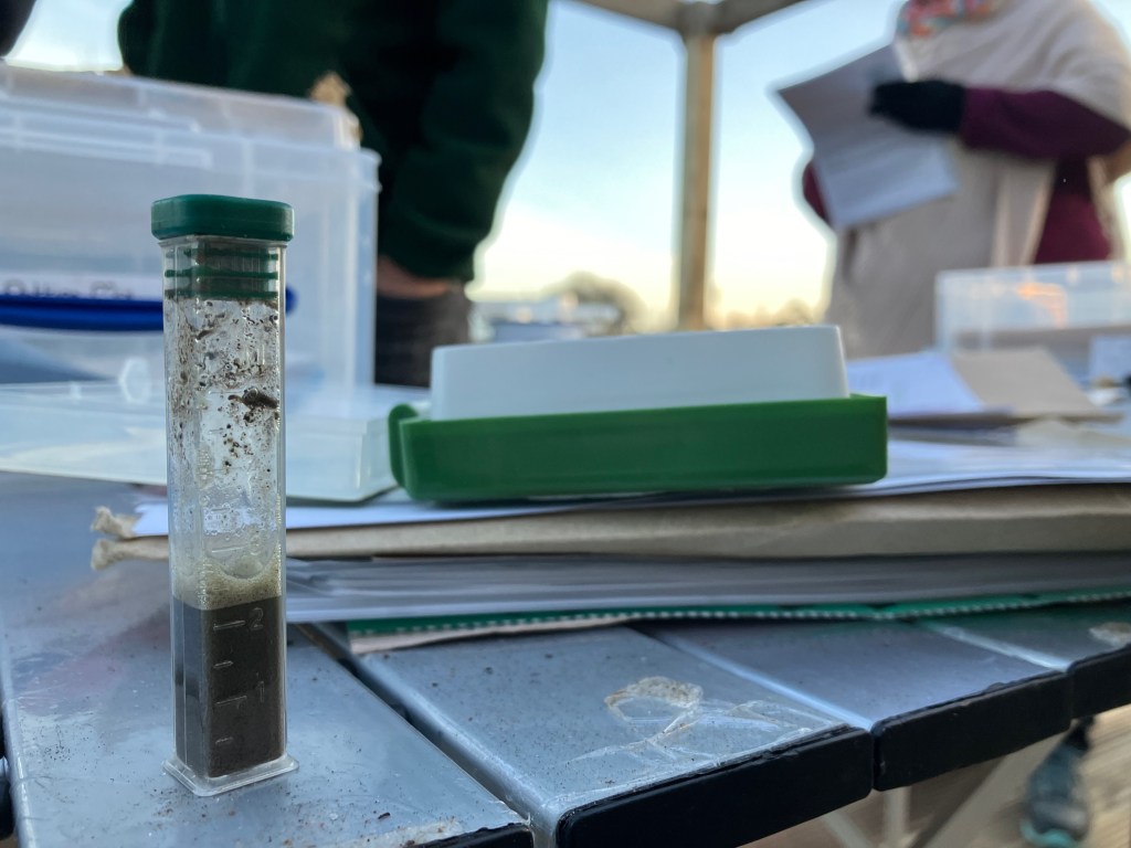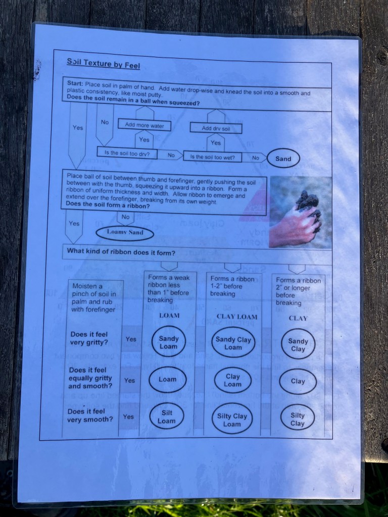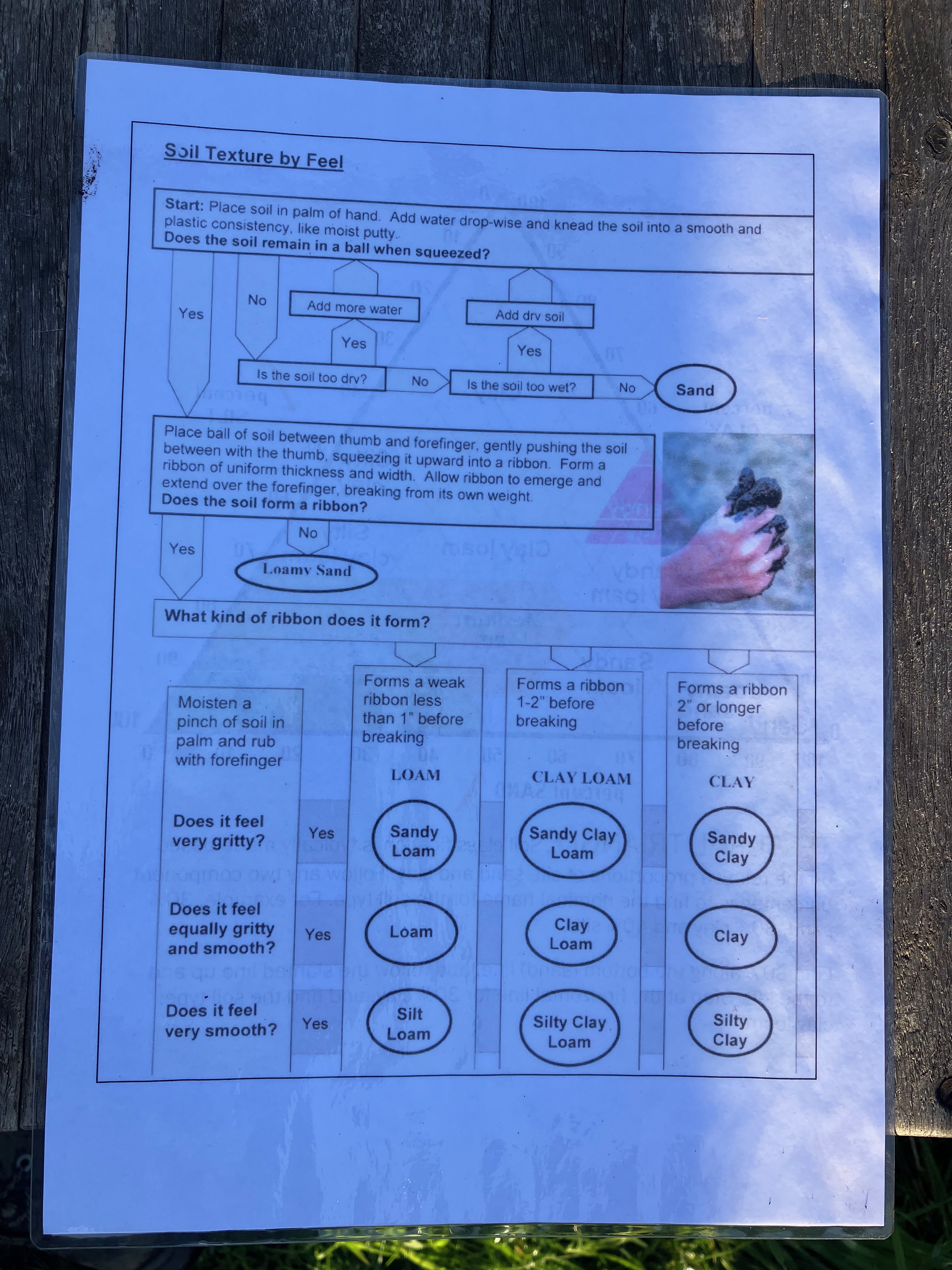 Putting a bit of our soil into a jar with some water can also help indicate soil type. If the soil sinks/the water is clear, this indicates sandy soil. Cloudy water indicates a clay soil, because it takes longer for those finer particles to sink. Organic matter floats.