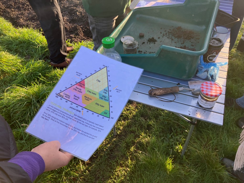 We learnt about soil structure and how this relates to resilience, since healthy soil is one of our best defences in the face of climate change. Healthy soil is more able to sequester carbon and will be more likely to hold the necessary air/water/nutrients that plants need. Finer soil structures (with less organic matter), or compacted soils, are less resilient – they are unable to absorb moisture and so are not good in the face of either drought or flood.
