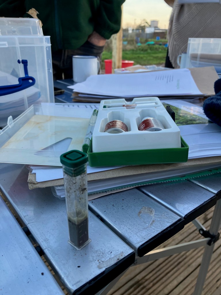 Finally, we tested the Ph. This is to do with the amount of hydrogen ions in soil and it doesn’t change much if you’re gardening organically/not adding chemicals. It is the application of Nitrogen & Phosphate fertilisers that makes soil more acidic, hence need for lime, because the acidity affects how well the soil can access nutrients. This is another reason why growing organically and building soil health is a better way to grow – not only is it better for the planet, but it is better for the pocket too, as you don’t have to spend money on fertilisers!
