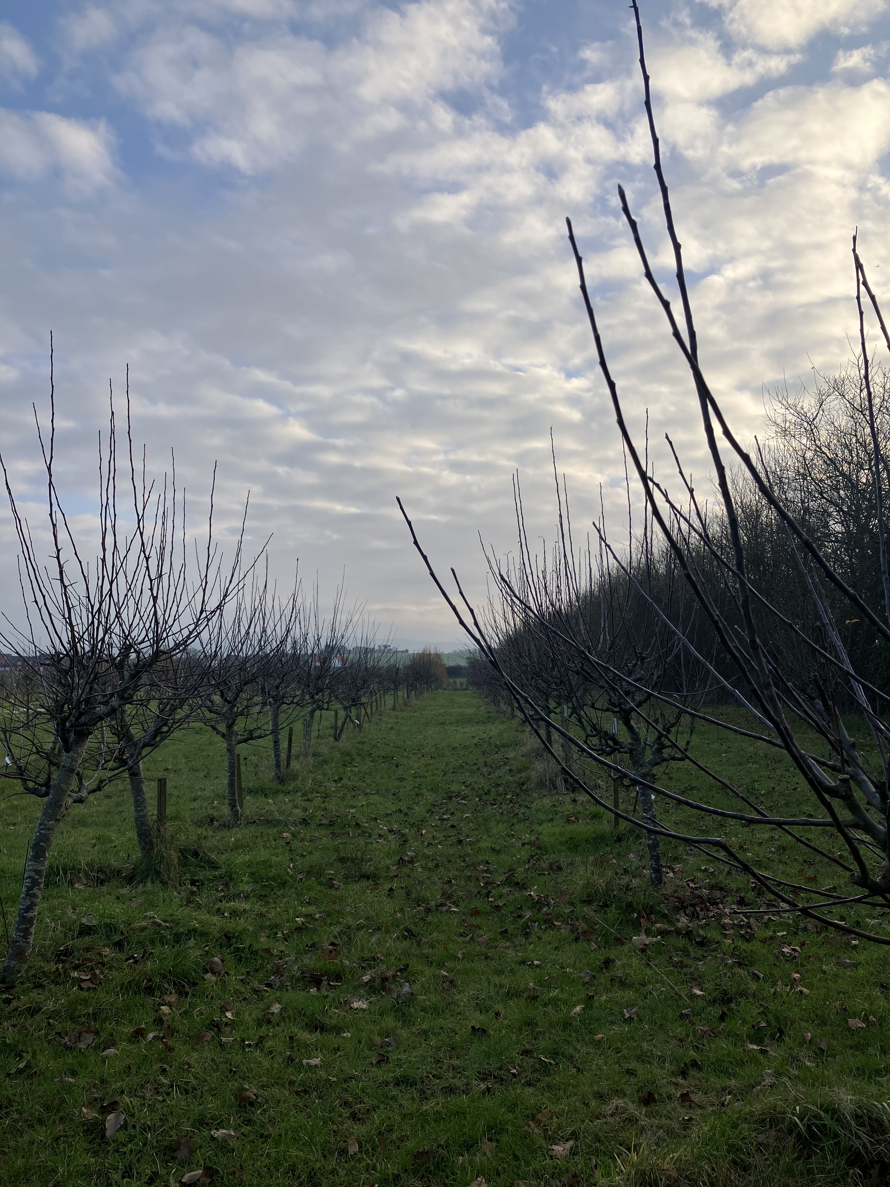 The “Mother trees” have straight shoots taken from them each year – and these shoots are grafted onto the various preferred rootstocks. These are then planted out into the nursery fields to grown on for sale. Generally the tree saplings are sold as one year maidens – we’ve bought a mix of one and two year. Our saplings will have been dug up yesterday, bare rooted for collection, ready for us to plant out on the project plot.