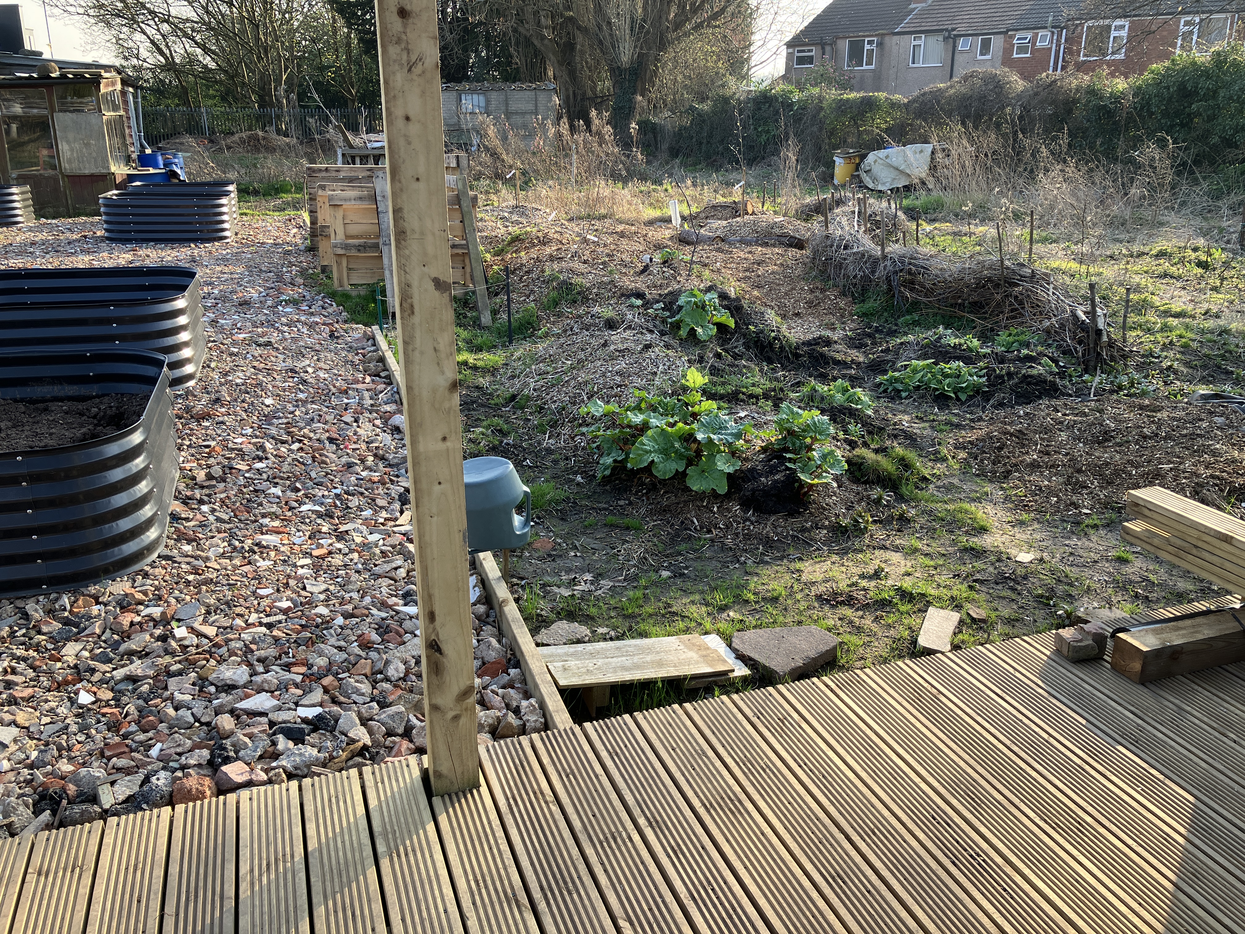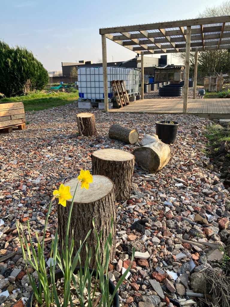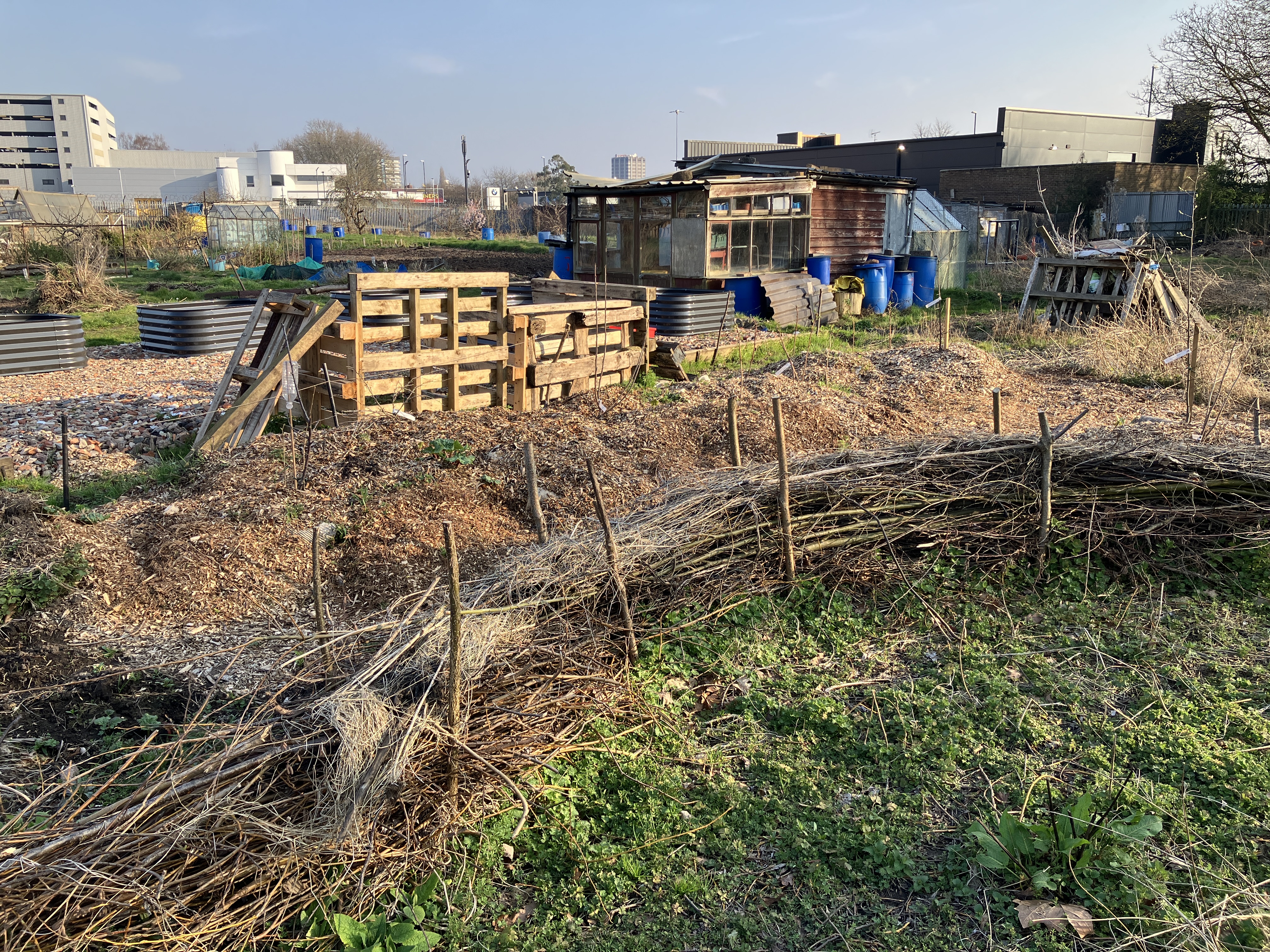 - Adding hard standing to half the waterlogged area to create a level area where raised beds could be sited, allowing food cultivation away from waterlogged ground. These raised beds are a more flexible way for people to become part of a food-growing community, without having to take on a full plot and also allow people to ‘downsize’ from a full plot without having to leave altogether.