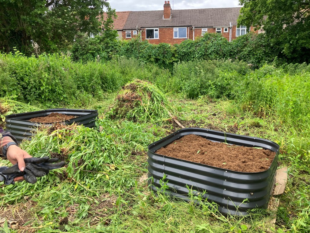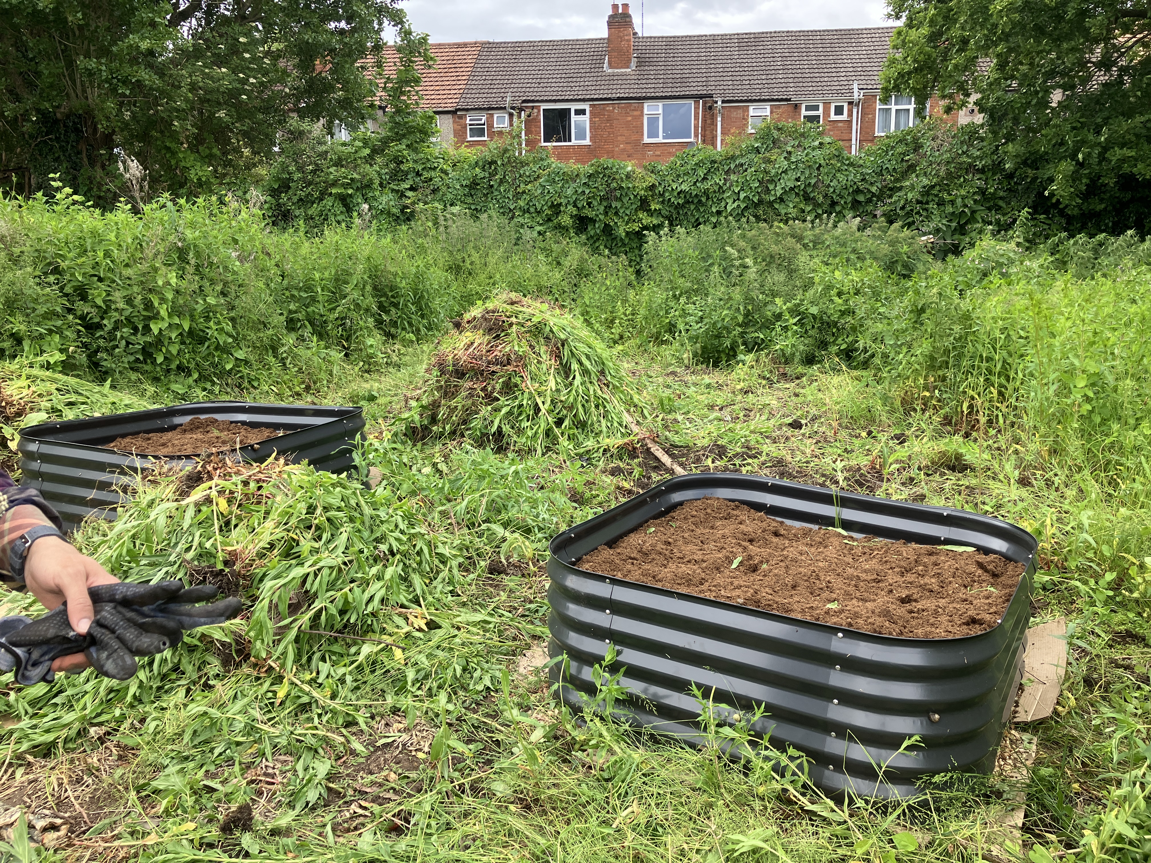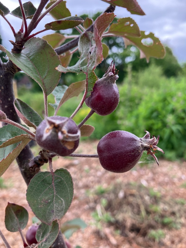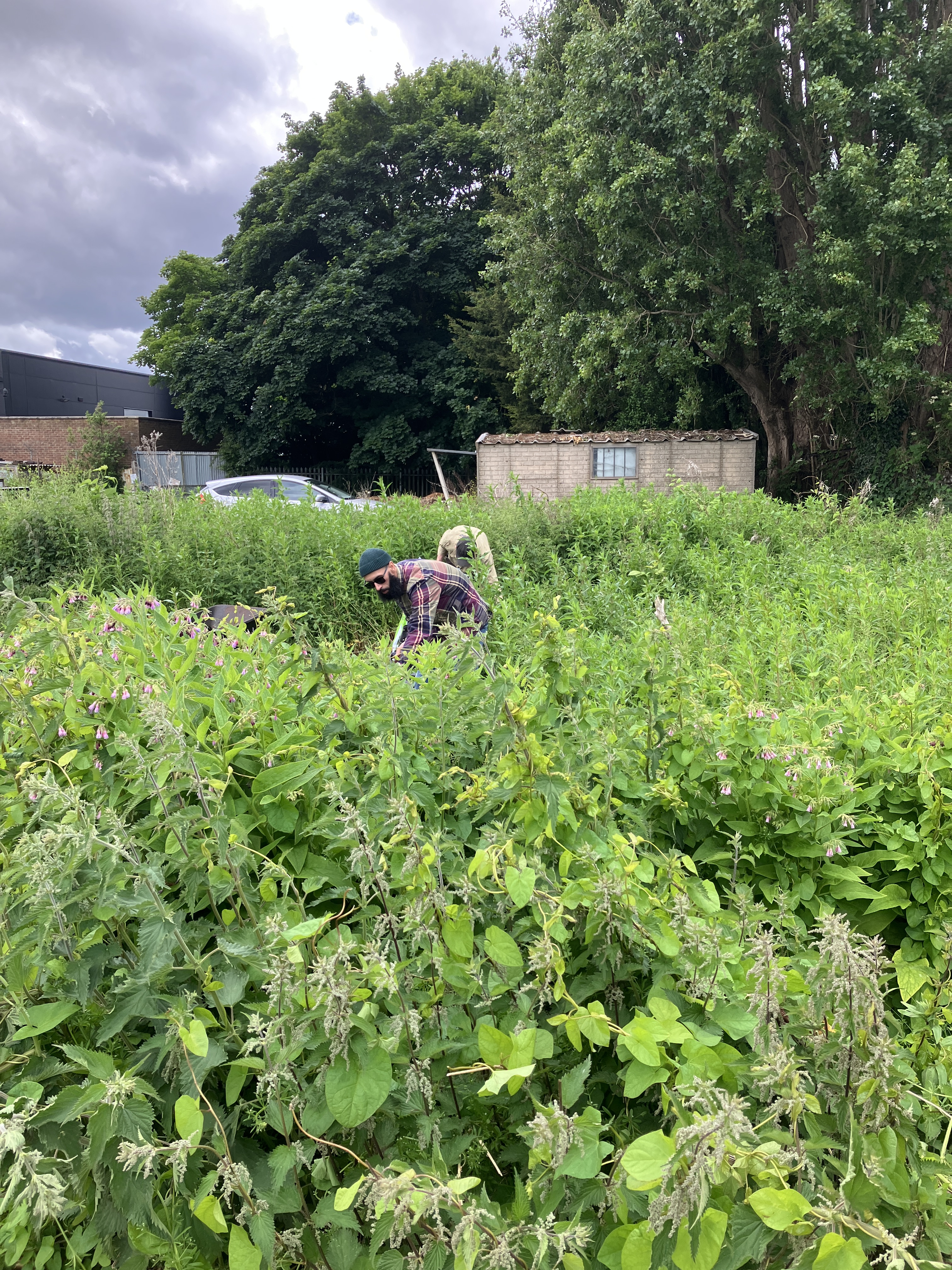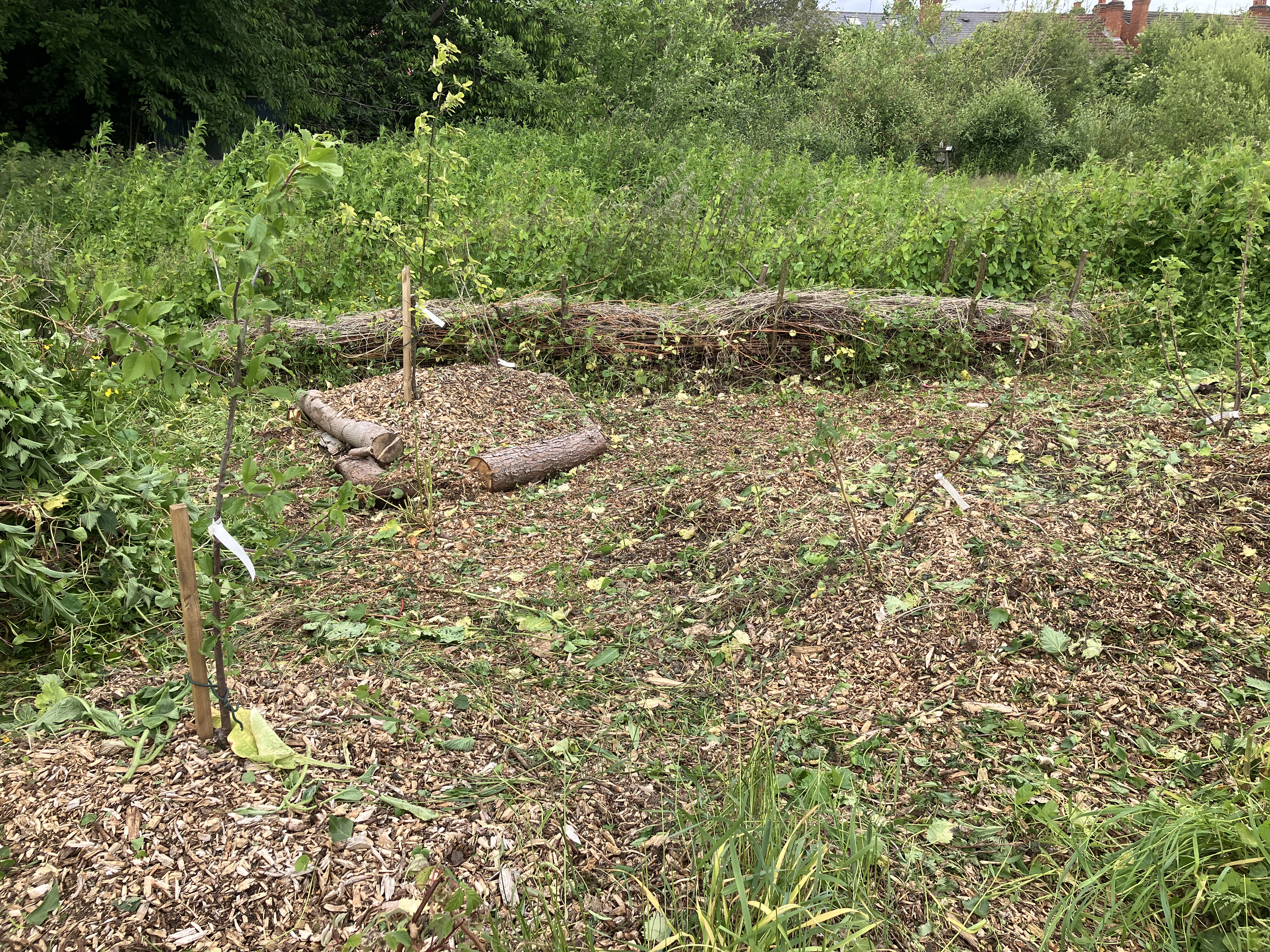 The sudden burst of wet weather following the very warm, dry spring has resulted in an explosion of nettles across the project plot, so today’s working party set out to pull those up and give the fruit trees and bushes of the mini-food-forest a bit more breathing space.