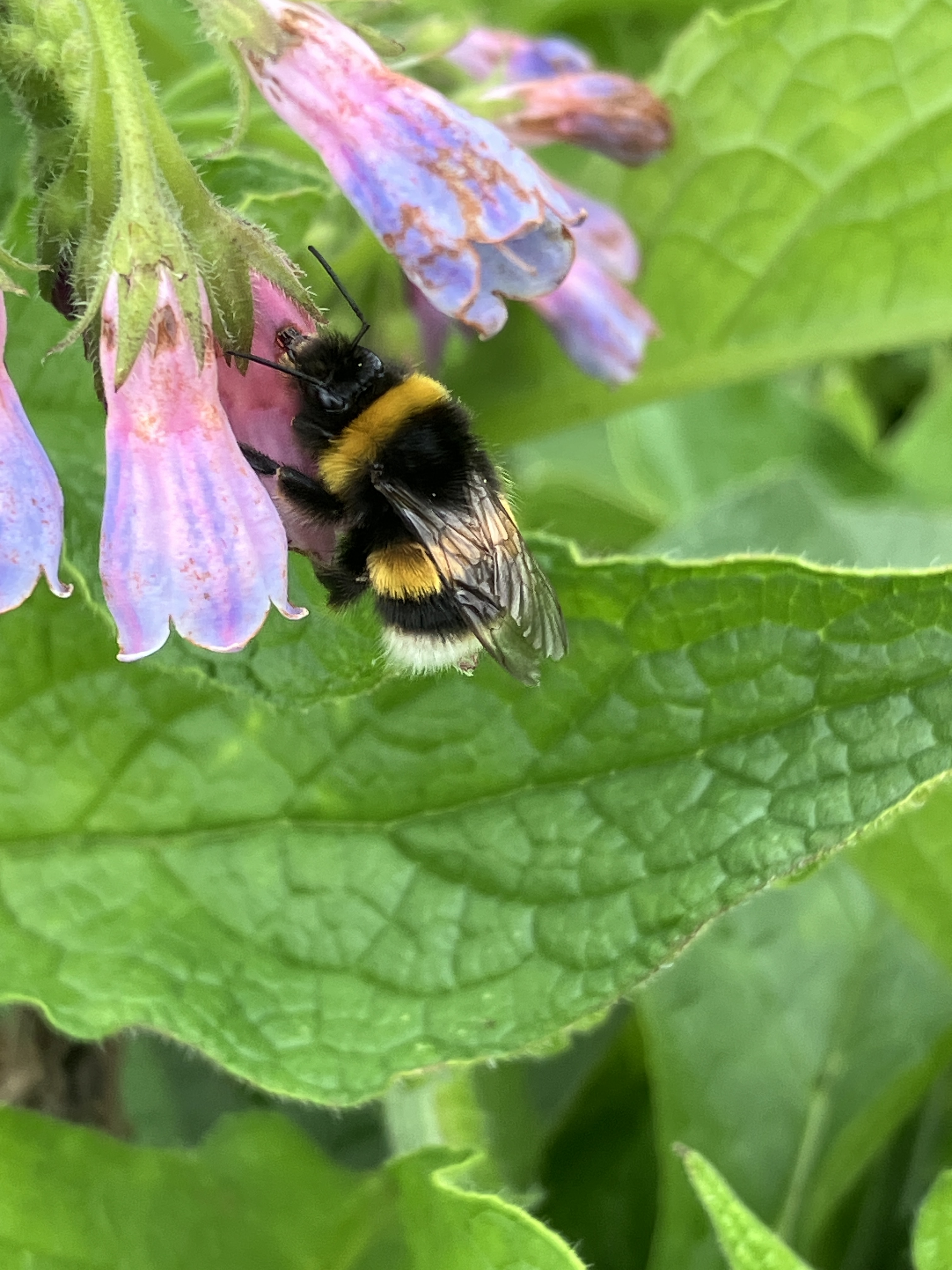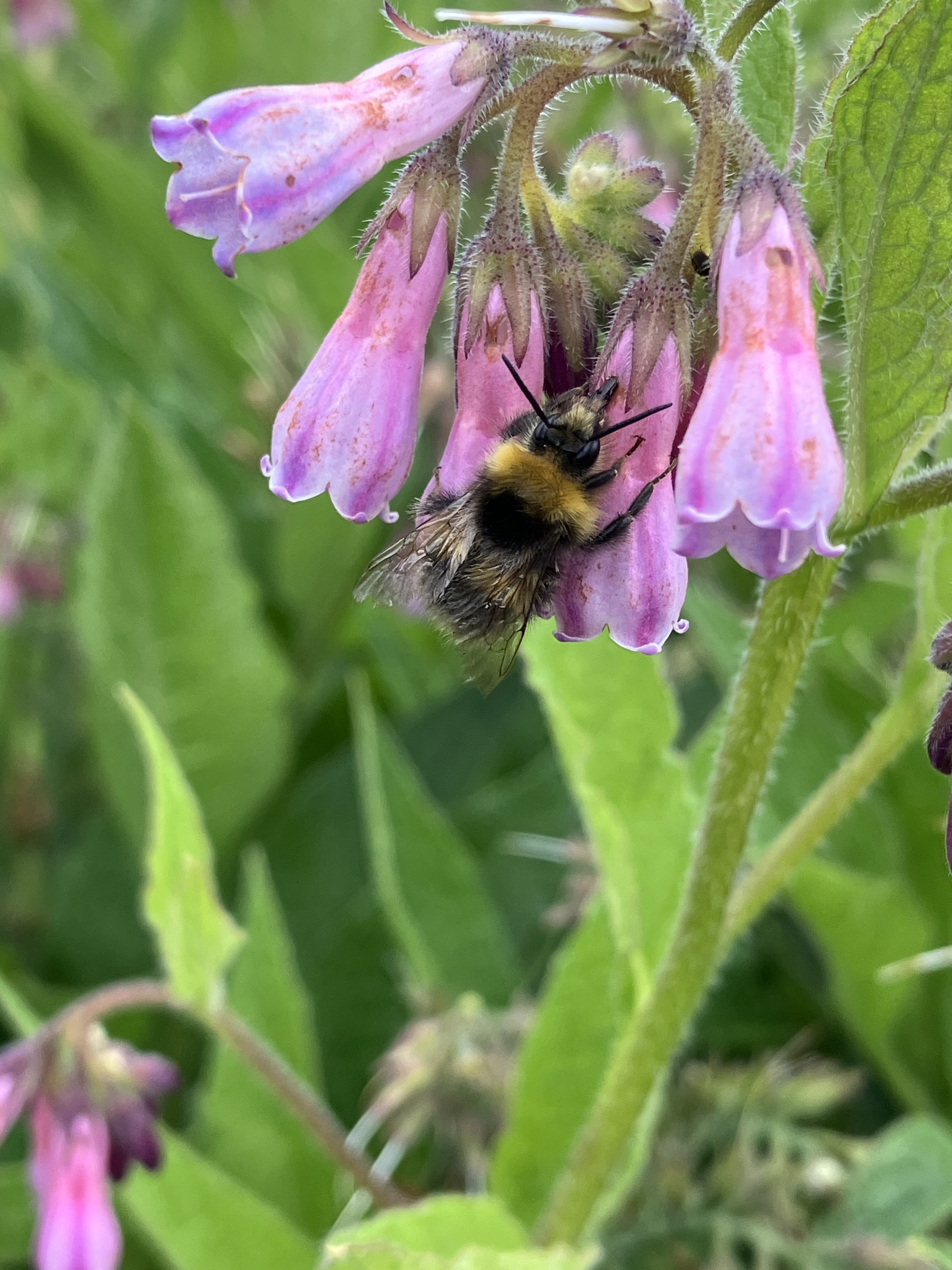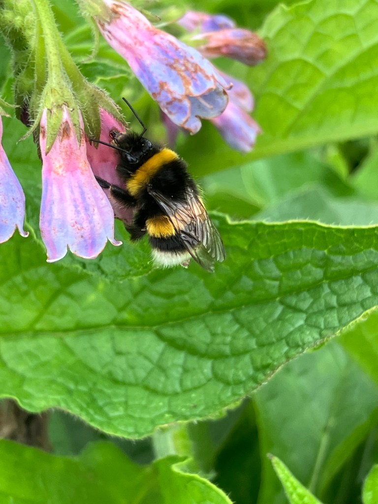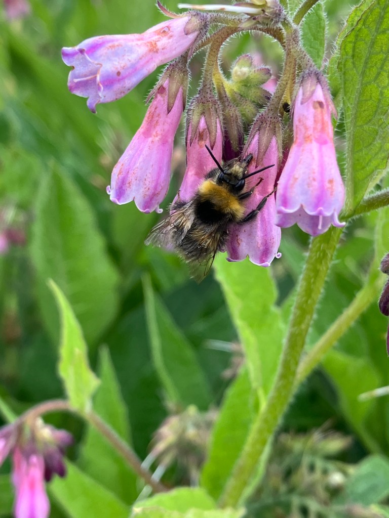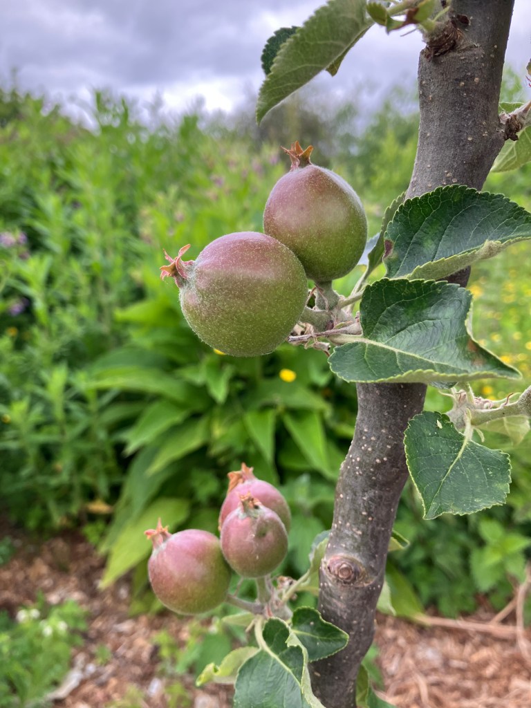 The sudden burst of wet weather following the very warm, dry spring has resulted in an explosion of nettles across the project plot, so today’s working party set out to pull those up and give the fruit trees and bushes of the mini-food-forest a bit more breathing space.