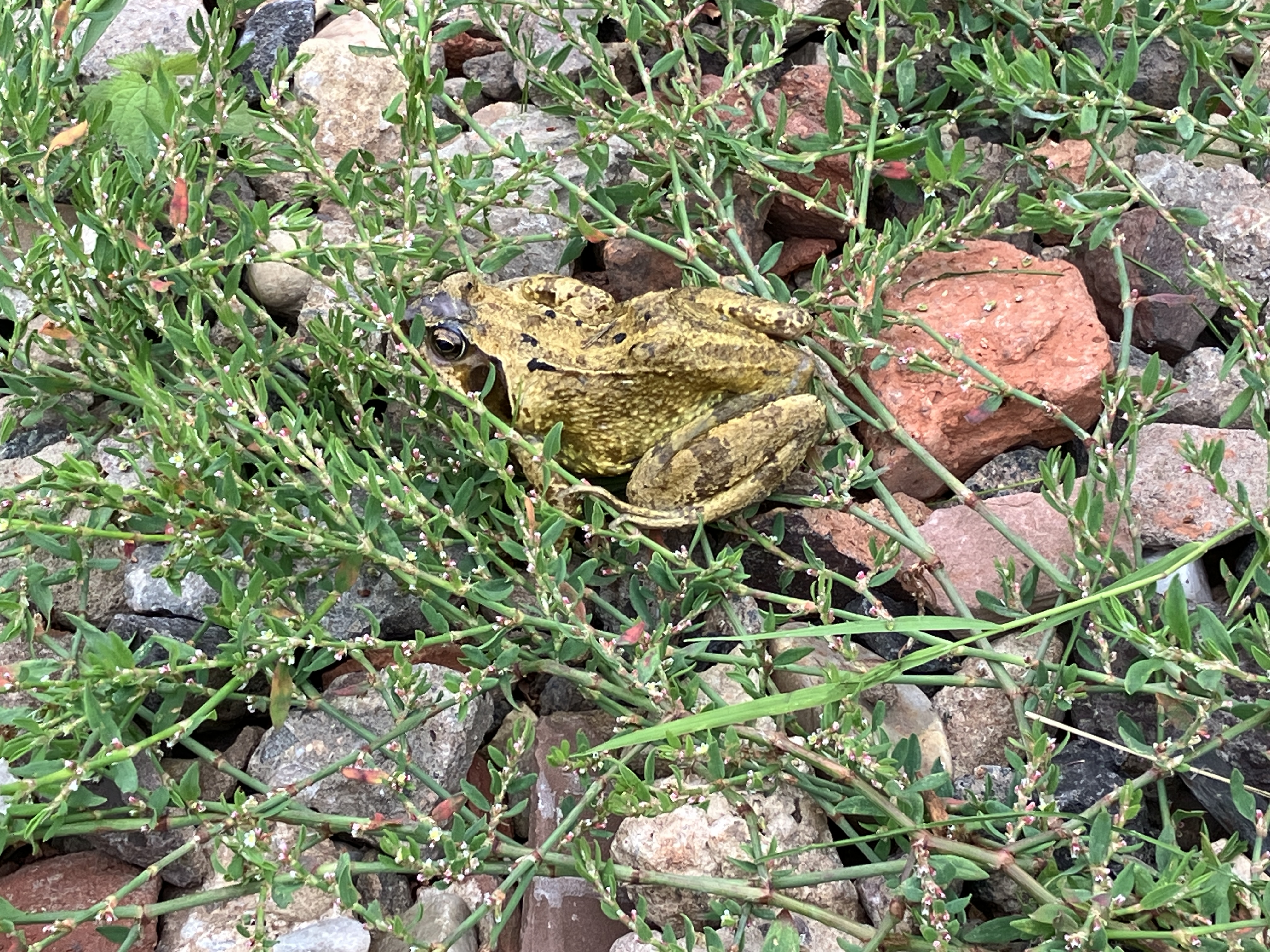 Just a select few today, so we had another go at the nettles and bindweed, and found a frog or two…