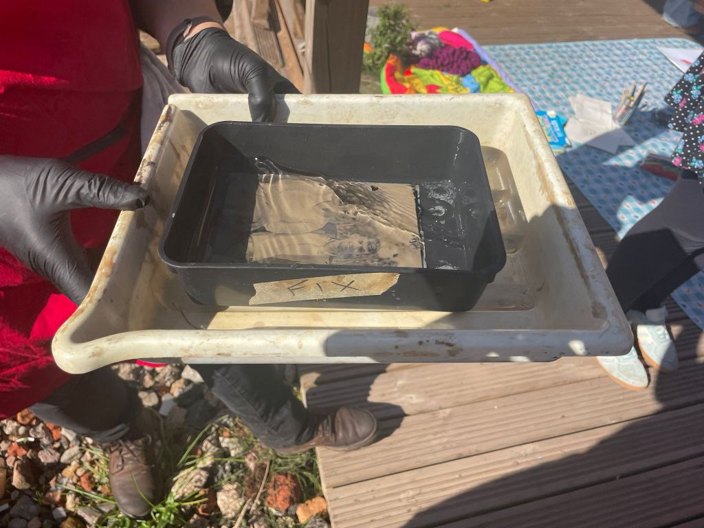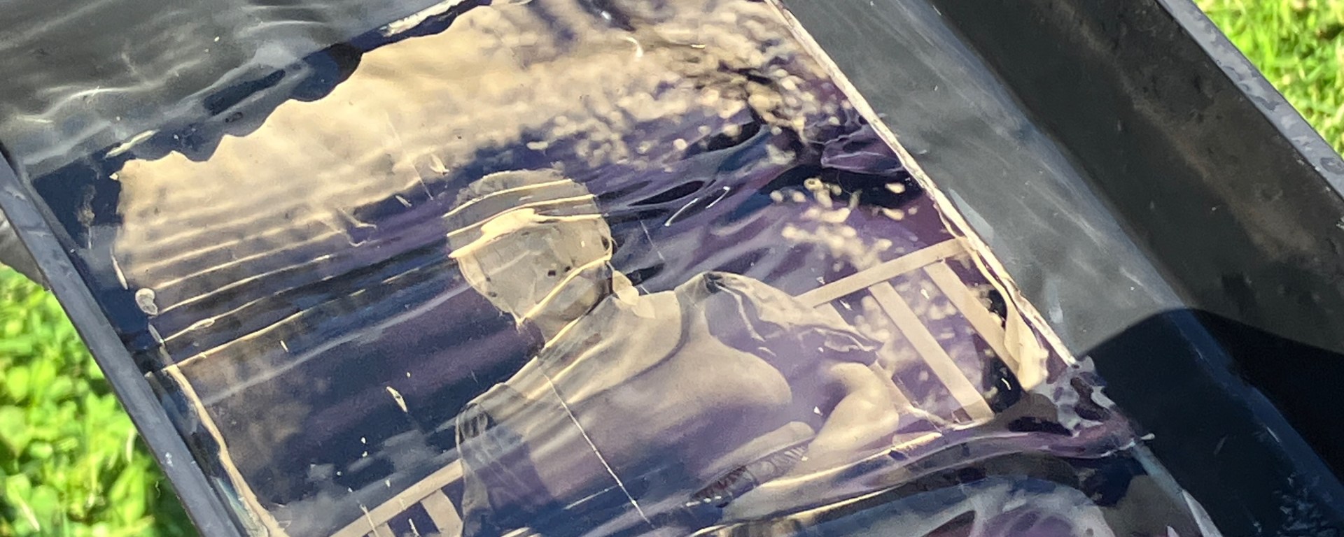 The weather was warm and sunny and the prints were beautiful. It was fascinating to see the process in action and to learn both about the Unlocking the Vaults project and the photographic process. Apparently the emulsion reacts differently to different colours – this is what leads blue or green eyes to look so bright and piercing in these types of photographs. A fascinating, convivial and very lovely day.